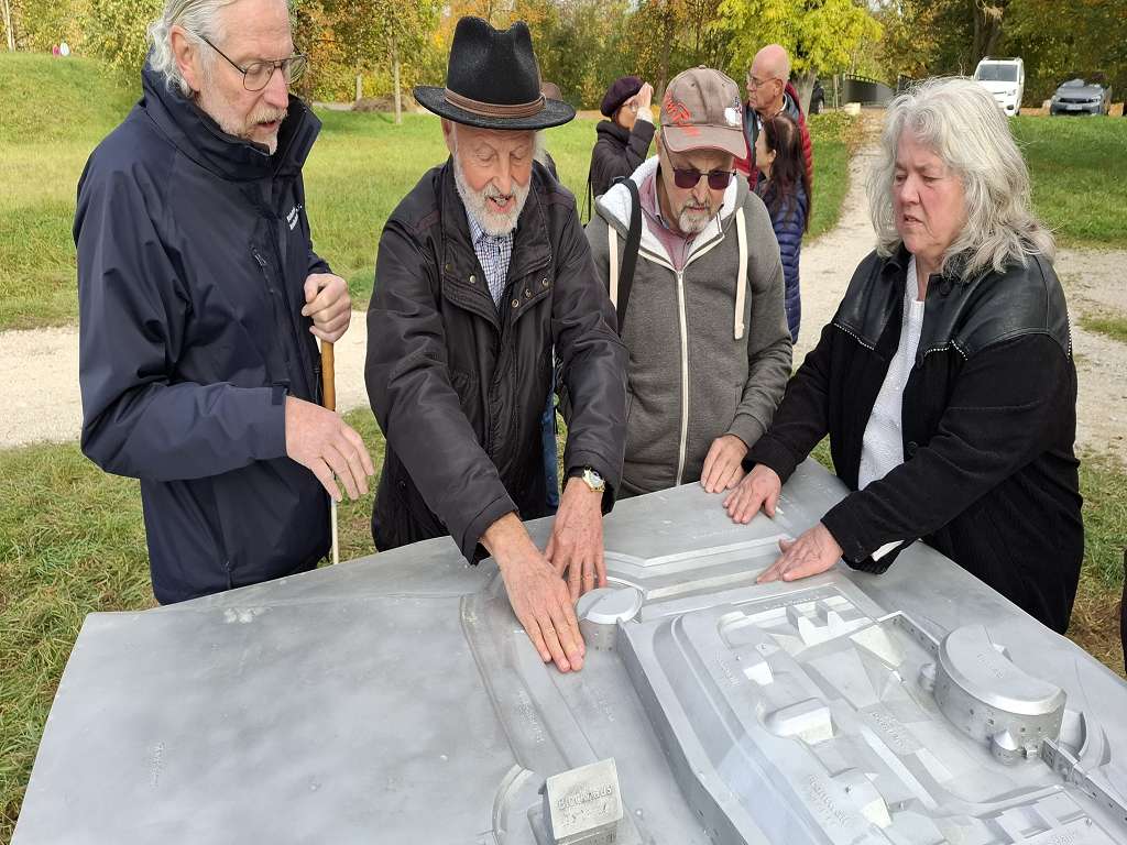 Die Gäste betrachteten das Modell genau und auch anwesende sehbehinderte Menschen ertasteten seine Beschaffenheit und die in ihm enthaltenen Informationen. Anschließend begab man sich ins Blockhaus, das auf den Tag genau Jahr zuvor eingeweiht worden war, besichtigte die Ausstellung im 1. OG und aß lecker-deftige, von Vereinsmitgliedern selbstgekochte, Kartoffelsuppe.
